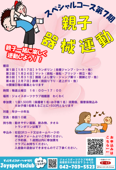 スペシャルコース第7期「親子器械運動」参加者募集