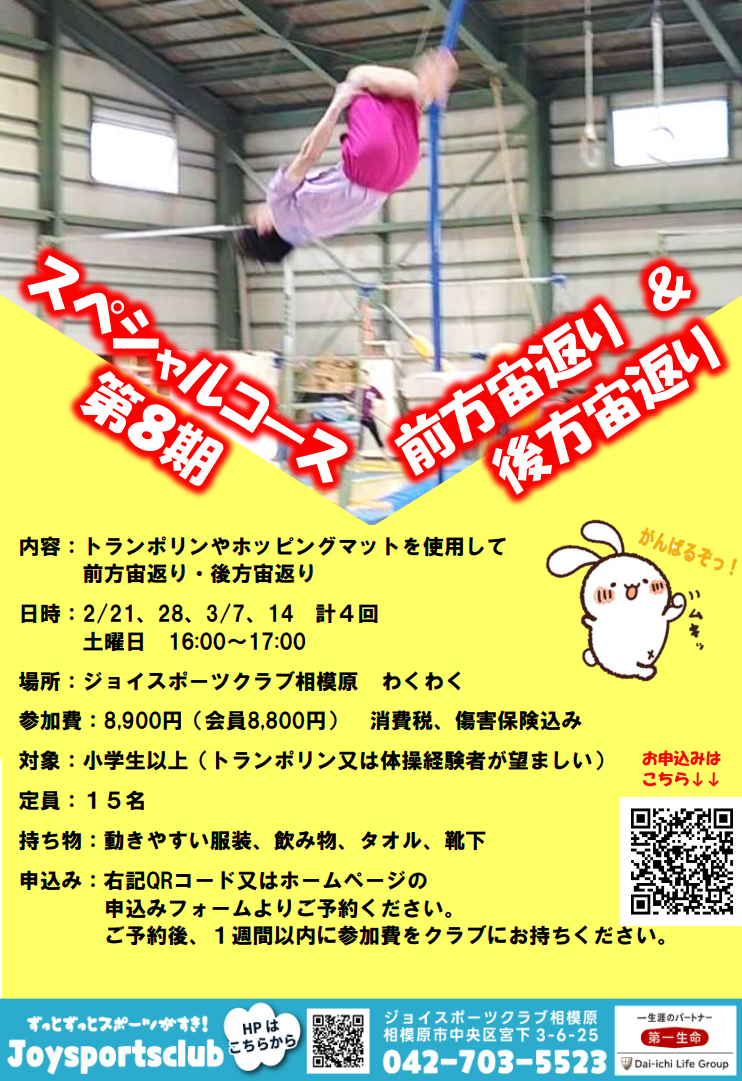スペシャルコース第8期「前方宙返り・後方宙返り」参加者募集!